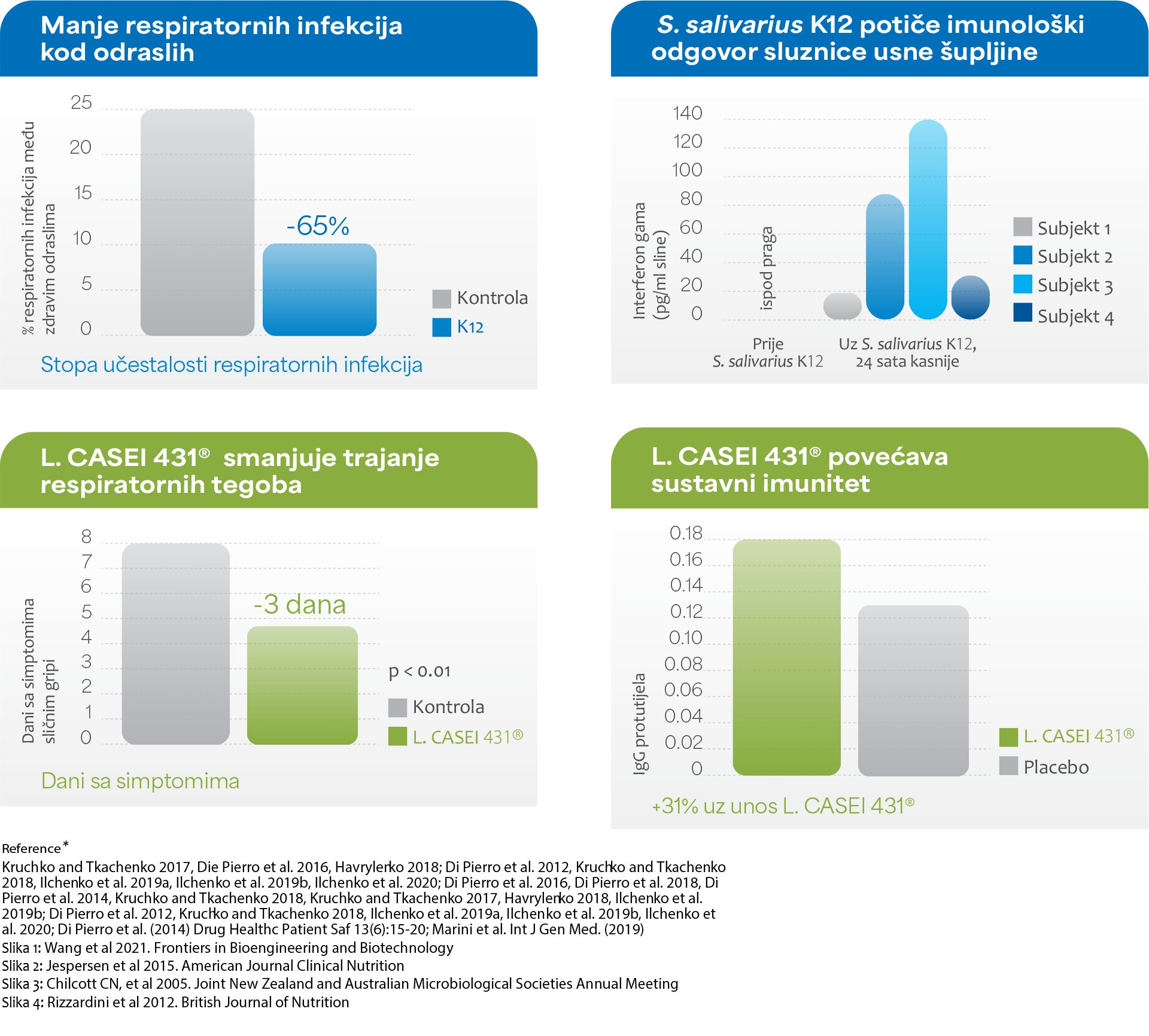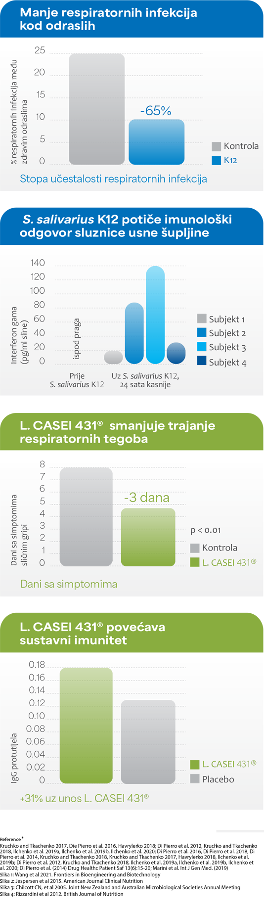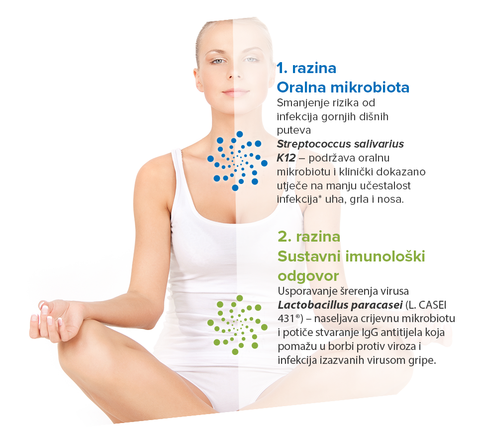Za razliku od djece, odrasli su osjetljiviji na virusne infekcije gornjih dišnih puteva. Stoga je osim oralne mikrobiote važno podržati i crijevnu mikrobiotu koja utječe ne samo na lokalni odgovor u sluznici, nego i na sustavni imunitet.